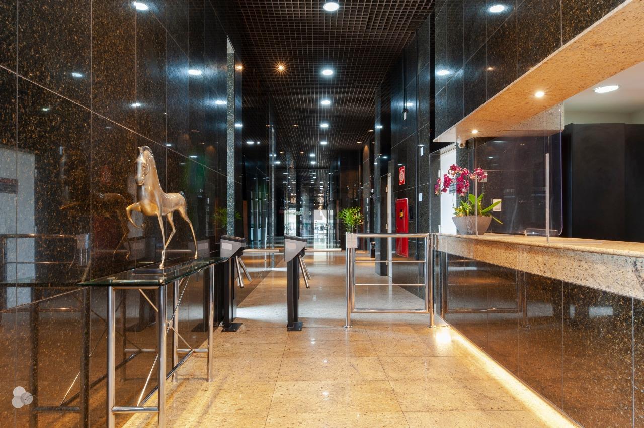 Prédio comercial imponente, de esquina, alto luxo, a um quarteirão da Praça da Liberdade, revestido em granito preto, 03 elevadores, auditório, hall social decorado, portaria 24 h, controle de acesso com catracas e câmeras de segurança.