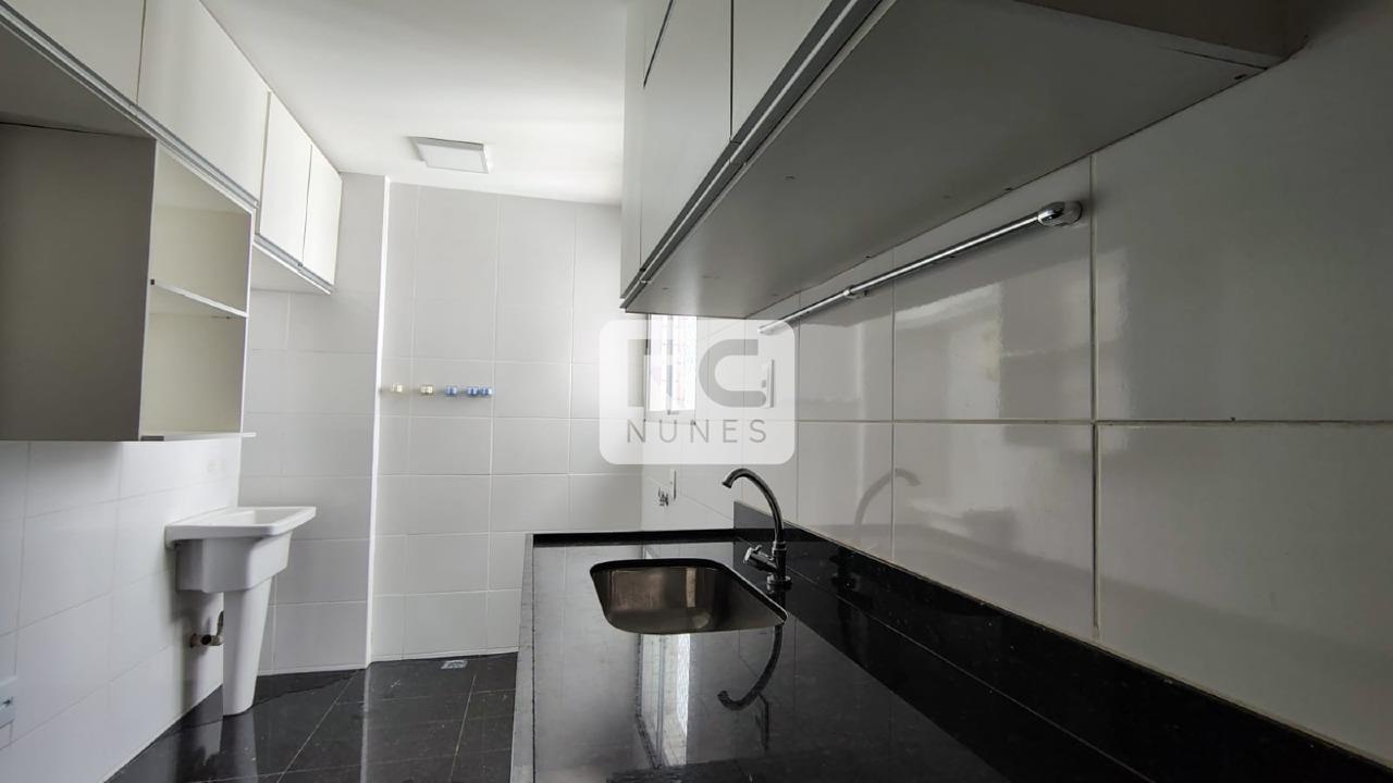 A cozinha estilo americana possui bancada em granito e armários planejados, perfeita para integrar praticidade e modernidade. Área de serviço independente.