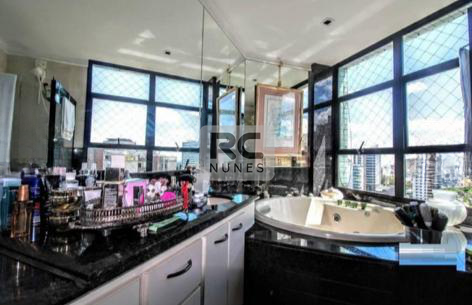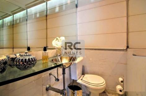 Quartos e Suítes: 4 quartos com tábua corrida, incluindo 2 suítes e 2 semi-suítes. Suíte master com banheira de hidromassagem e vista permanente. Janelas com venezianas em alumínio anodizado e banheiros revestidos em mármore.