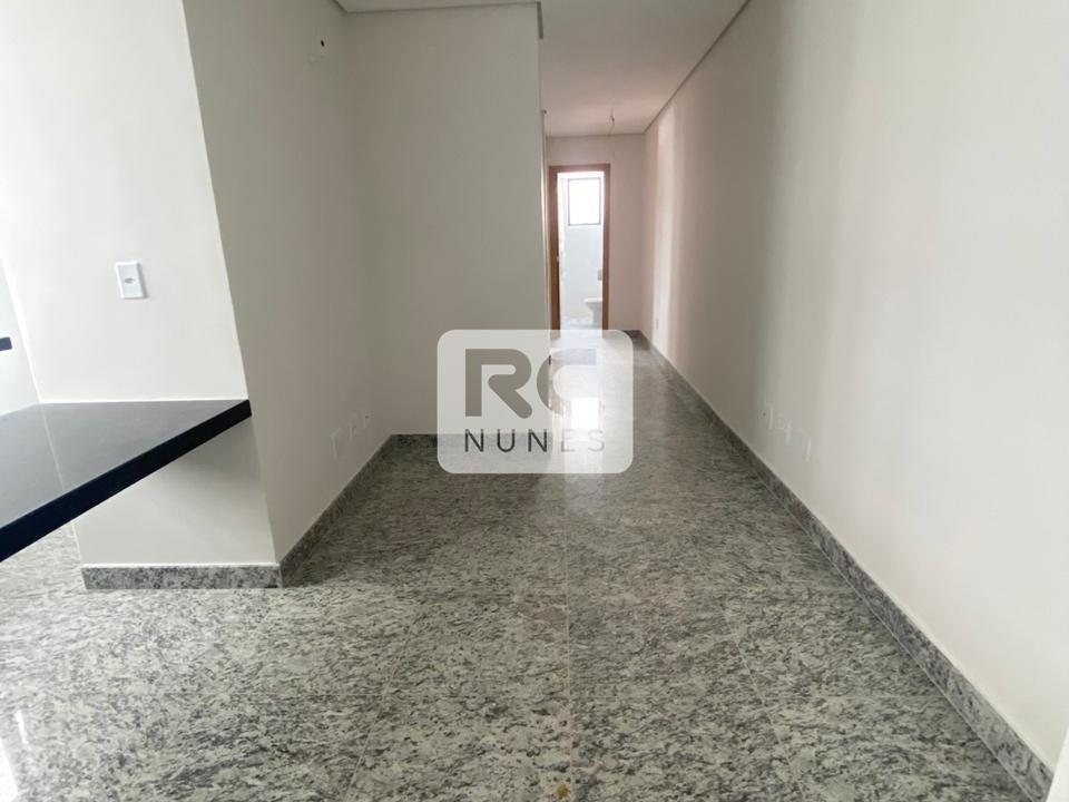 Apartamento novo com aproximadamente 54 m², com 02 quartos, sendo 01 suíte, ambos com piso laminado. Cozinha americana integrada à área de serviço.