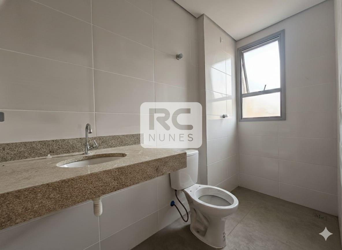 A cozinha conta com armários planejados e cooktop, enquanto a área de serviço, o banheiro social com armários e box e o banheiro de serviço possuem piso em porcelanato, oferecendo praticidade e acabamento de qualidade.