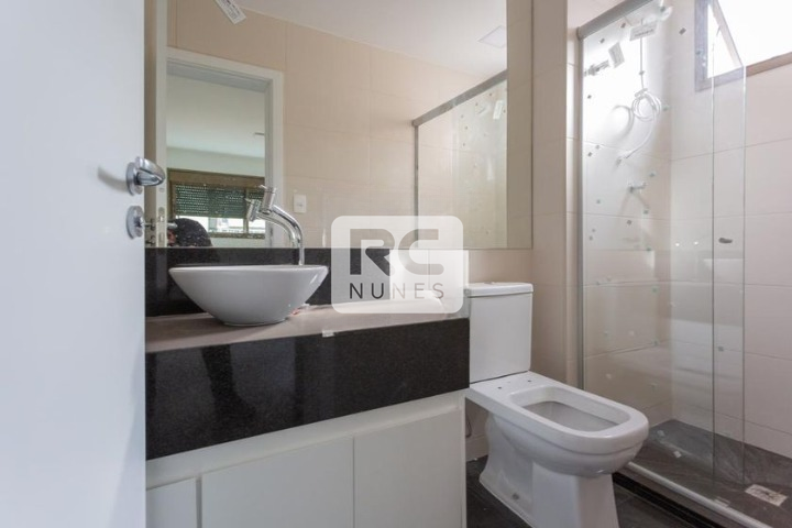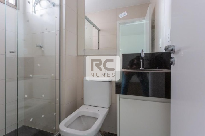 O imóvel dispõe de 2 quartos, ambos suítes, com piso em laminado, proporcionando conforto térmico. Os banheiros são equipados com box em blindex e armários planejados.