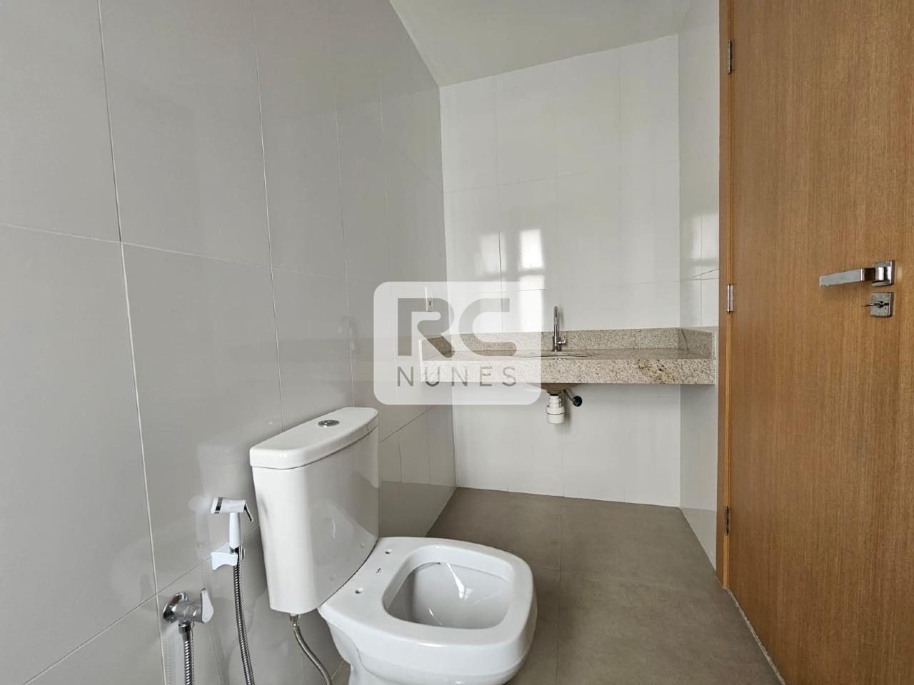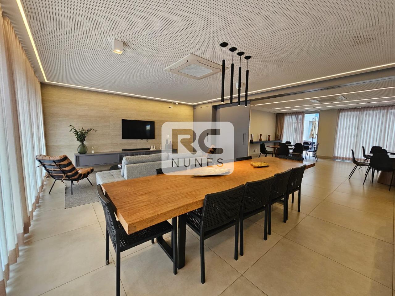 A sala para dois ambientes, com lavabo, é integrada à cozinha, proporcionando amplitude e funcionalidade, enquanto a cozinha e a área de serviço possuem piso em porcelanato, unindo sofisticação e praticidade.