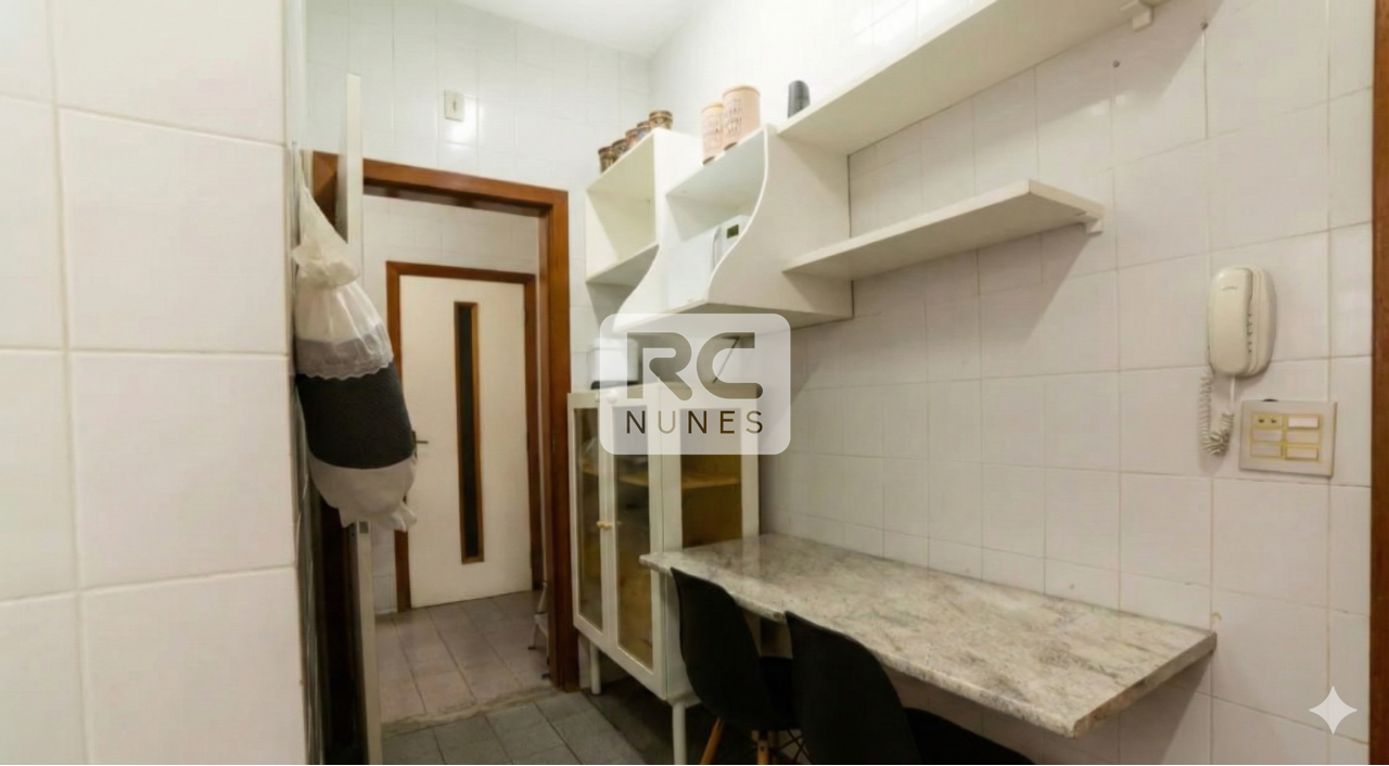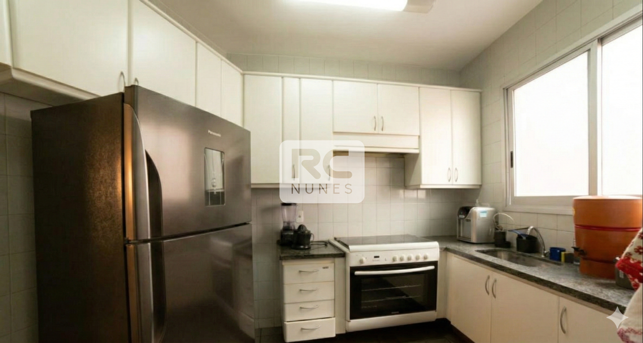 A cozinha é ampla, bem distribuída e com armários, além de contar com ótima área de circulação. Os banheiros possuem bancadas em granito e box em vidro.