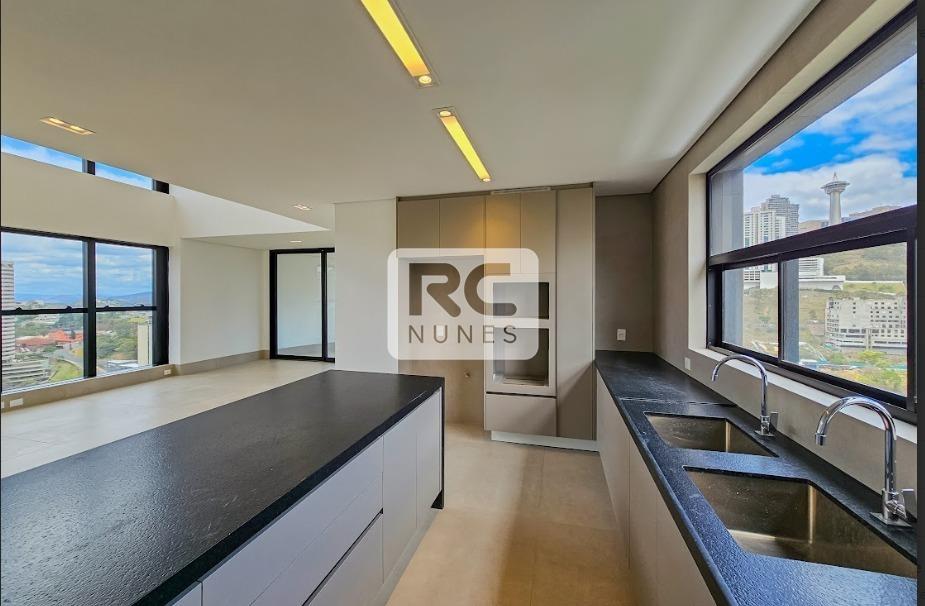 Apartamento duplex com 4 suítes, área total de 230m², 4 vagas de garagem.