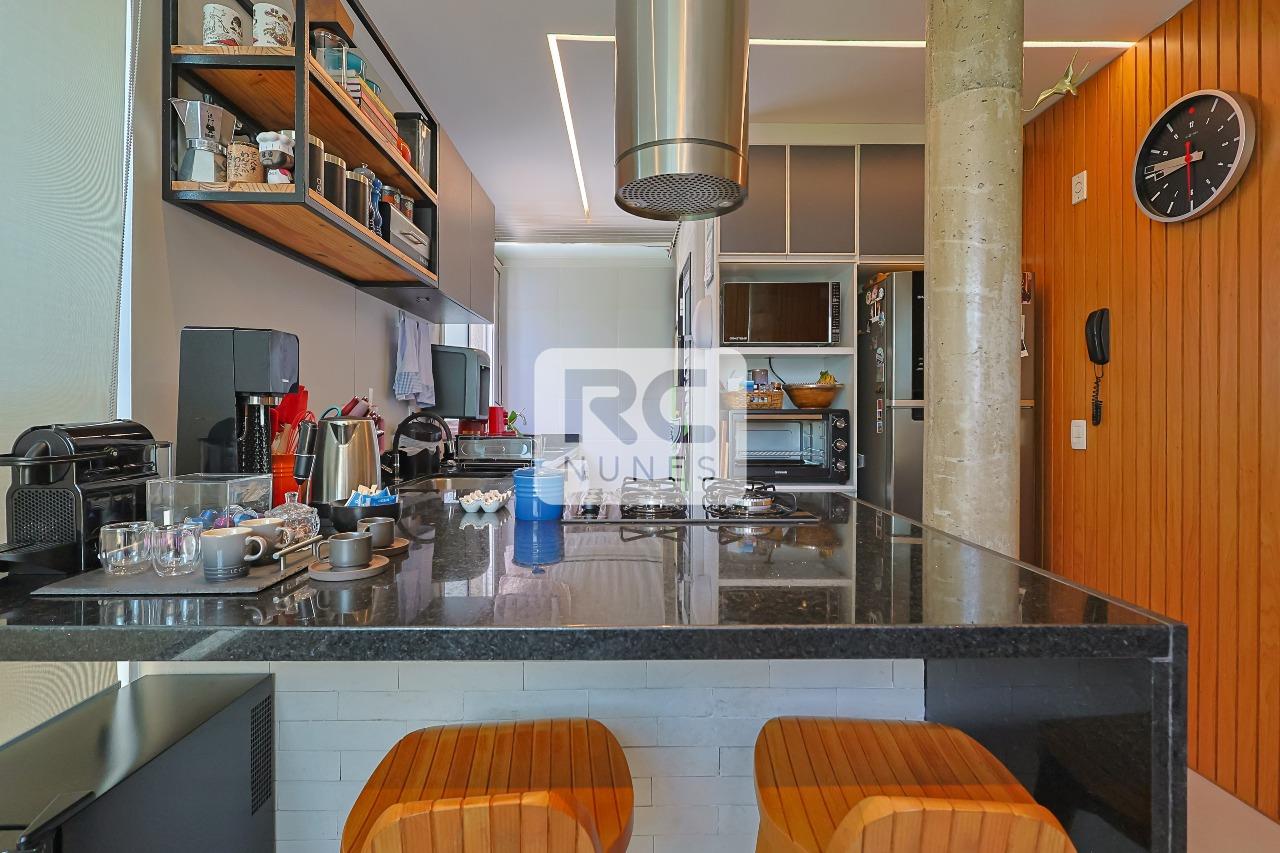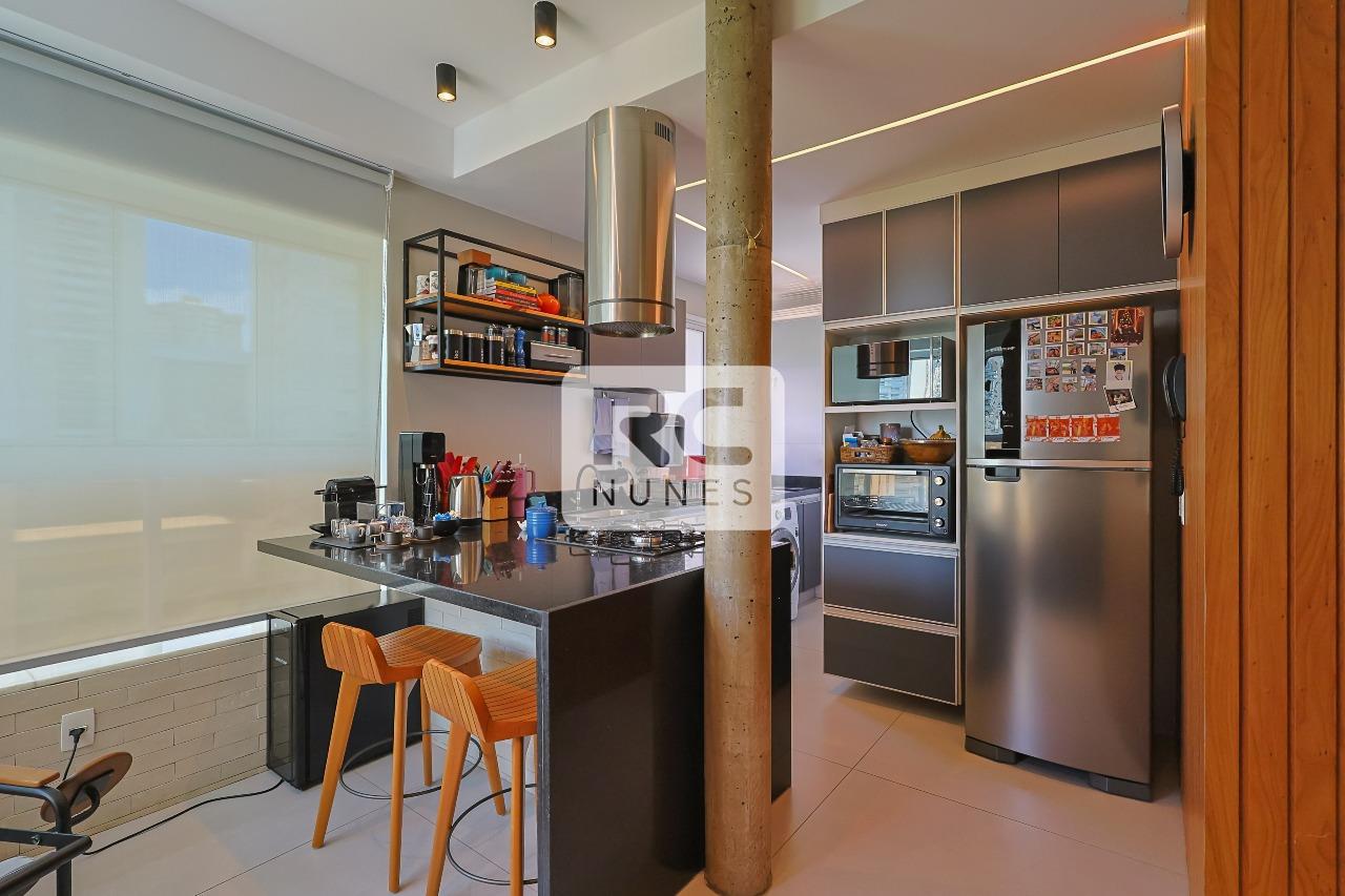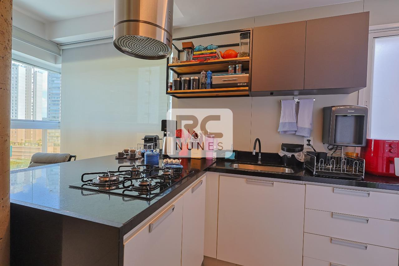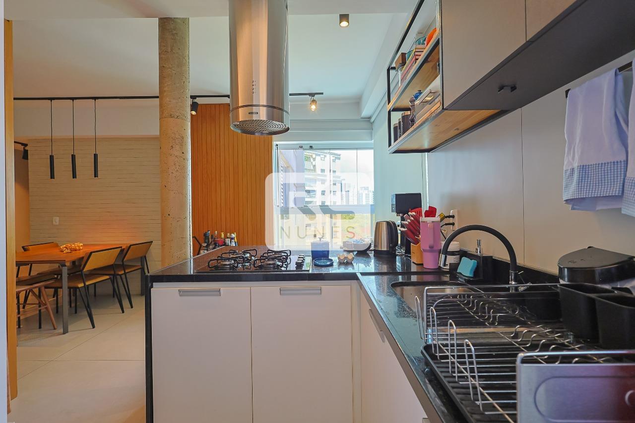 cozinha planejada, tipo americana com acesso a varanda;