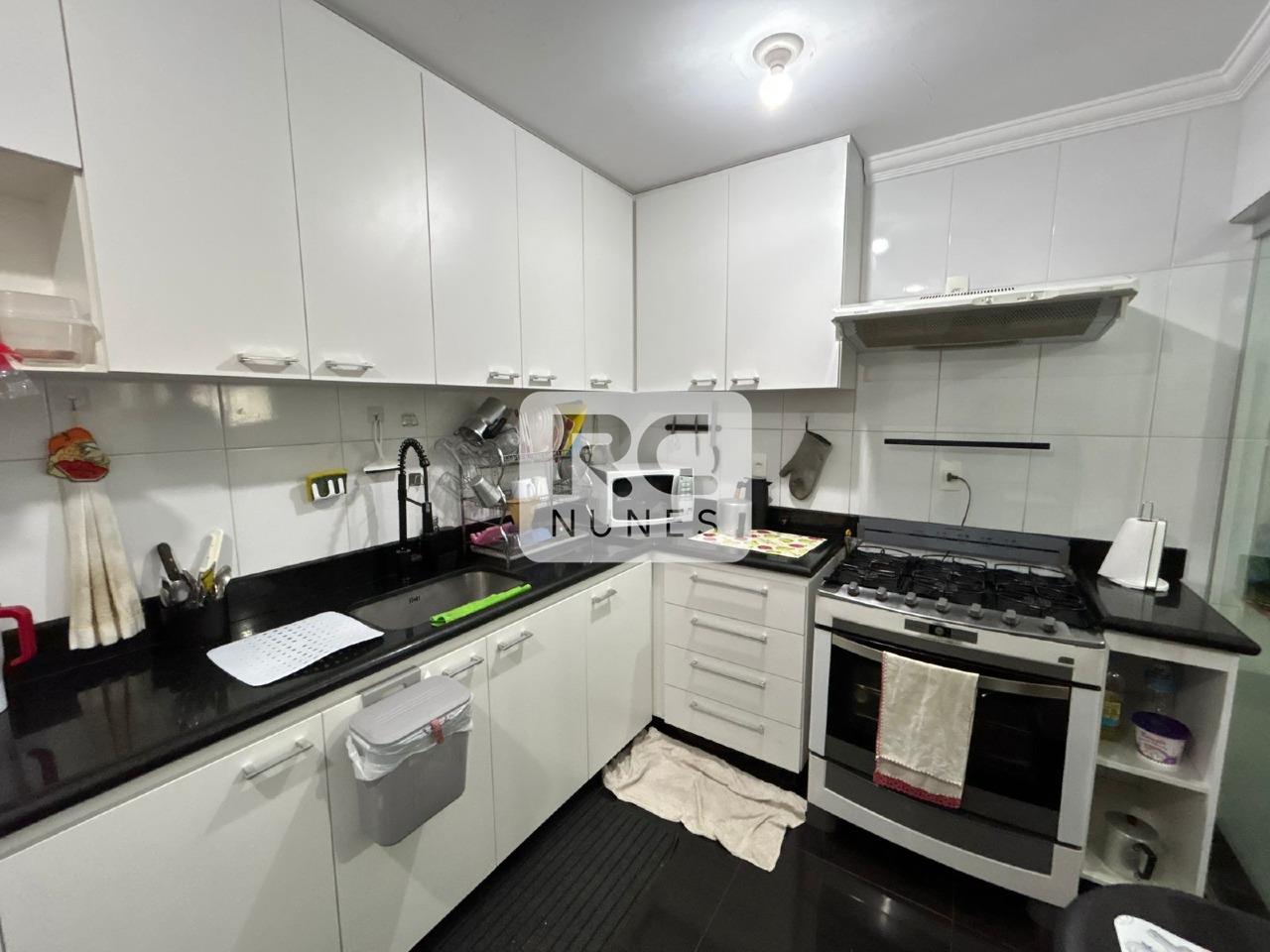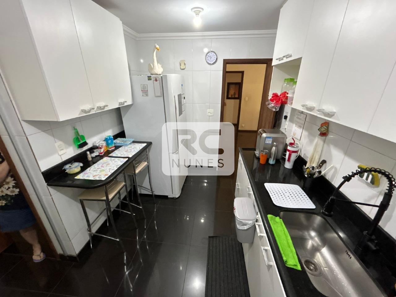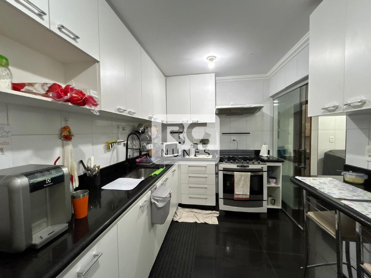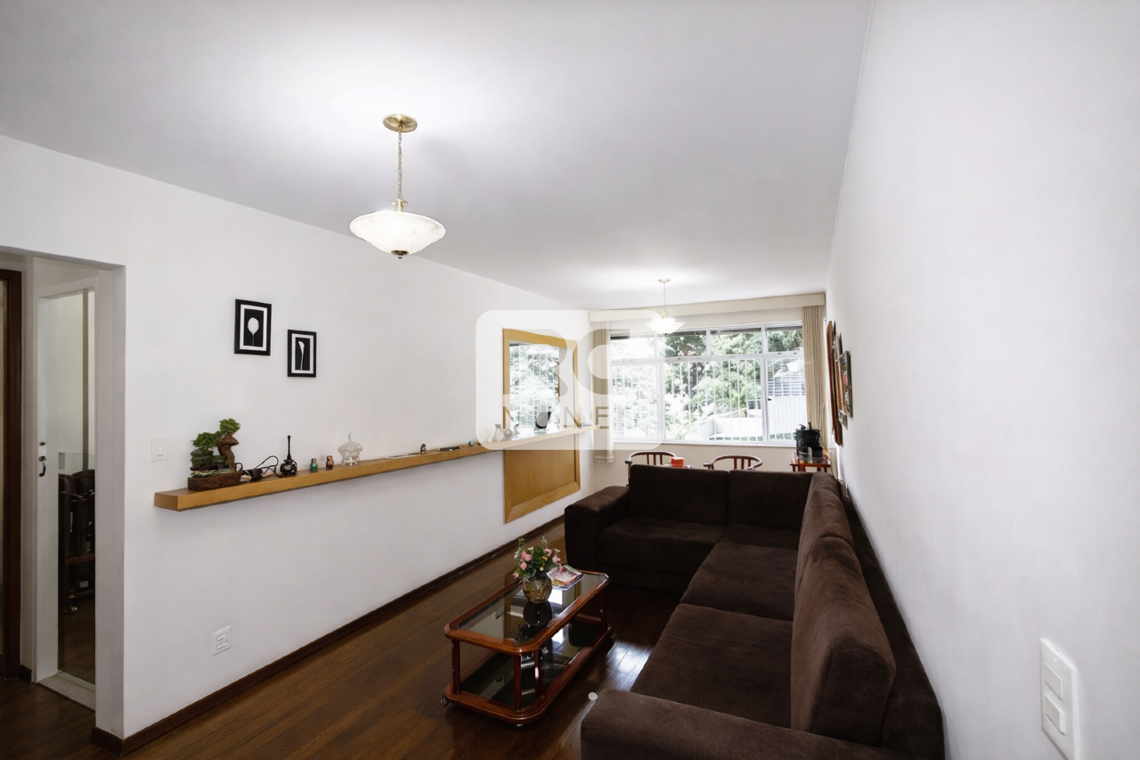 Sala de estar e jantar amplas com varanda integrada, piso em tábua corrida e pedra São Tomé, além de janelas grandes com esquadrias em alumínio. São 4 quartos, sendo 1 suíte, todos com armários e espelhos, banho social também com armários e box. Cozinha espaçosa com armários planejados, piso em porcelanato, mesa para refeições rápidas e bancadas em granito. Área de serviço separada por porta de vidro, entrada independente, bem arejada e com armários, além de dependência completa de empregada. Possui 2 vagas de garagem livres e cobertas. O prédio conta com sistema de segurança, interfone, portão eletrônico, jardim, faxineira três vezes por semana e gás canalizado.