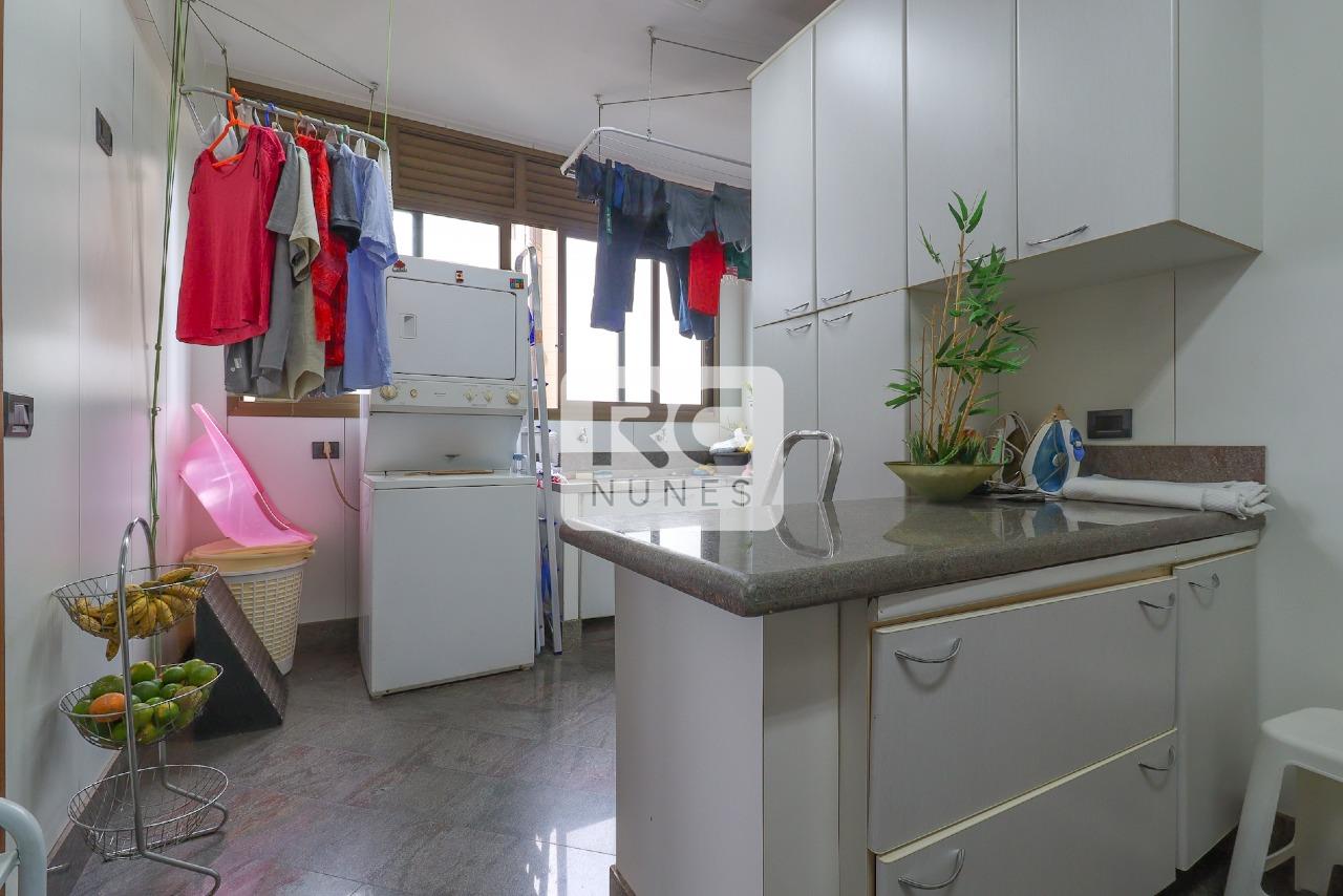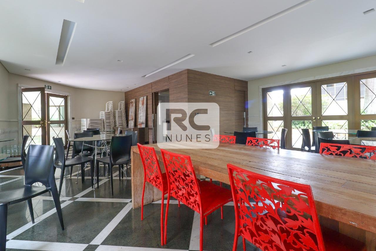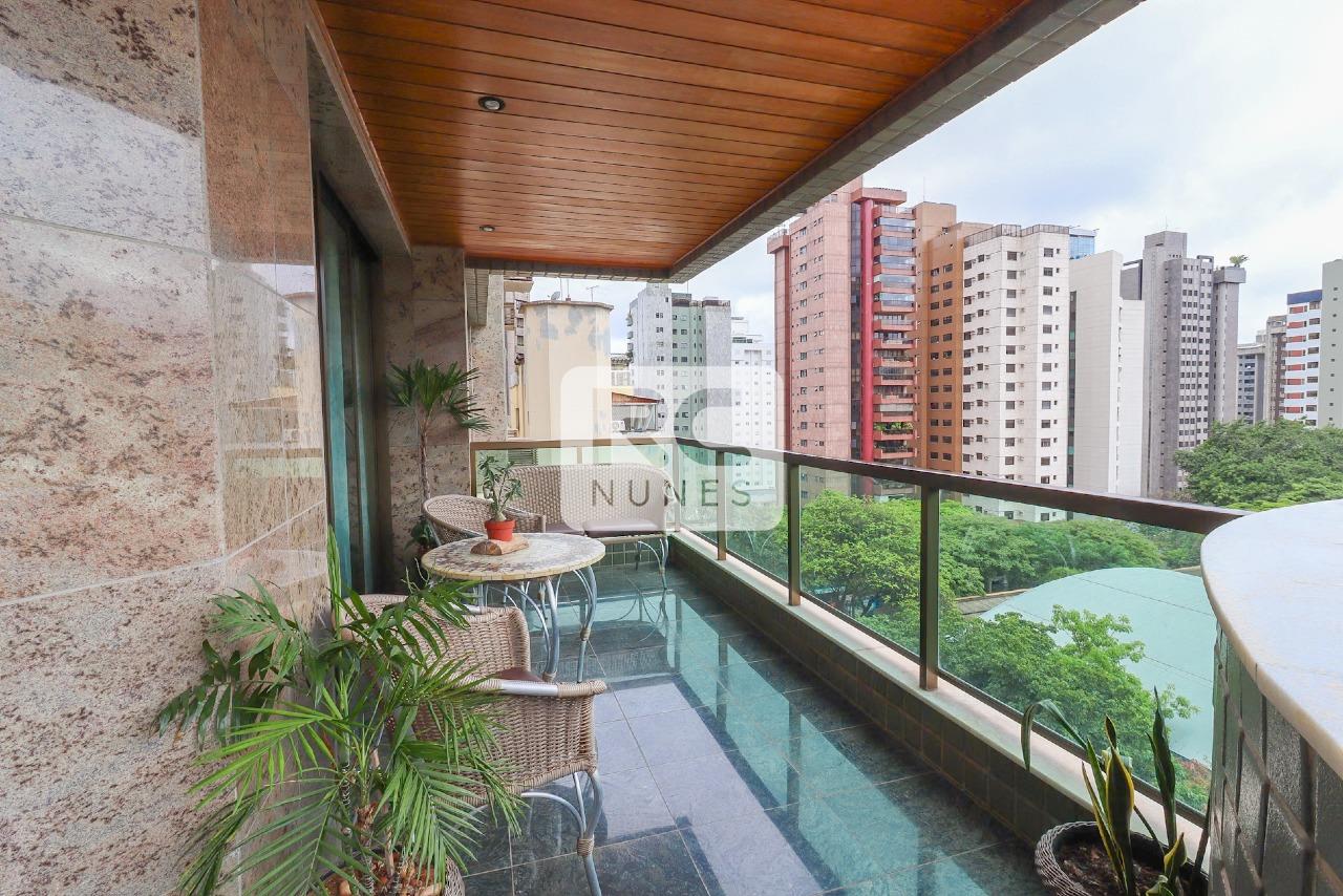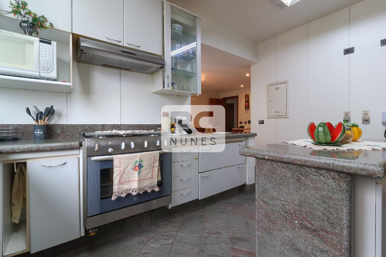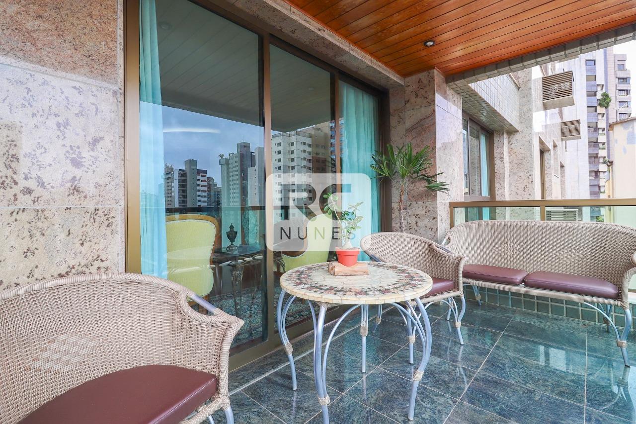 O apartamento possui sala com piso em tábua corrida e mármore, para 3 ambientes, projeto de iluminação, lavabo finamente decorado, varanda com vista panorâmica, 04 suítes, acabamento em mármore e granito. Rouparia, Closet, Cozinha ampla com piso e bancadas em granito, armários planejados. Área de serviço com piso em granito e DCE