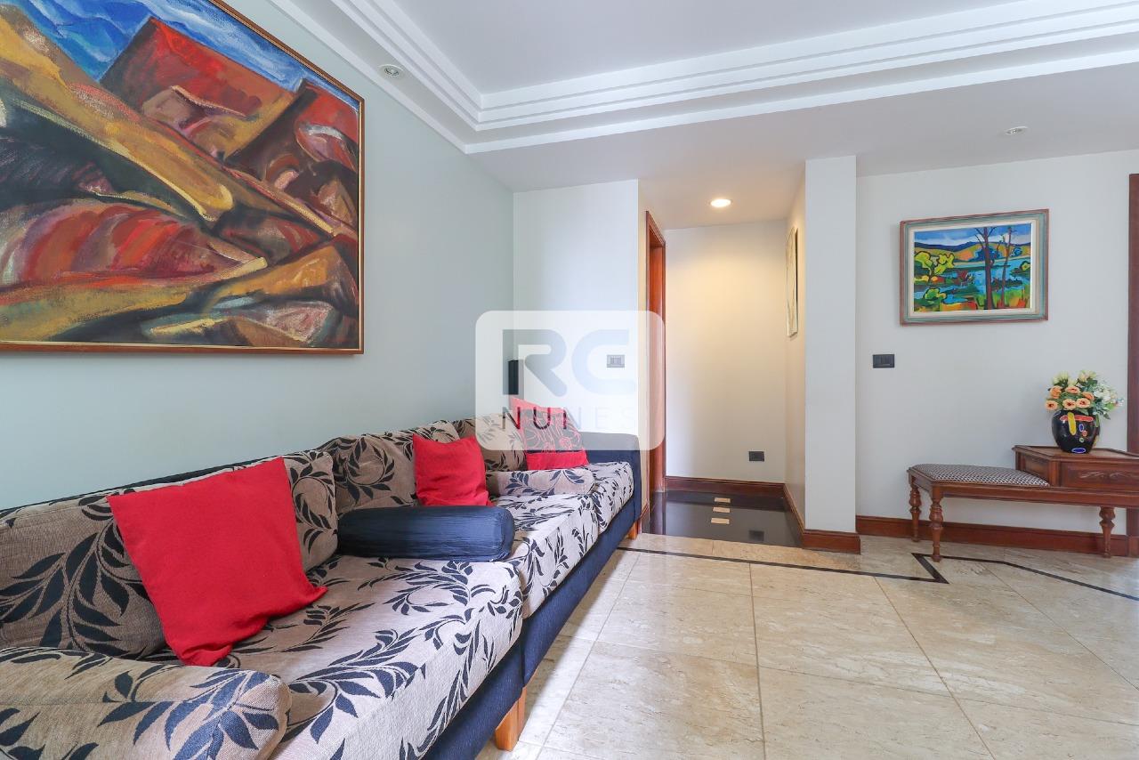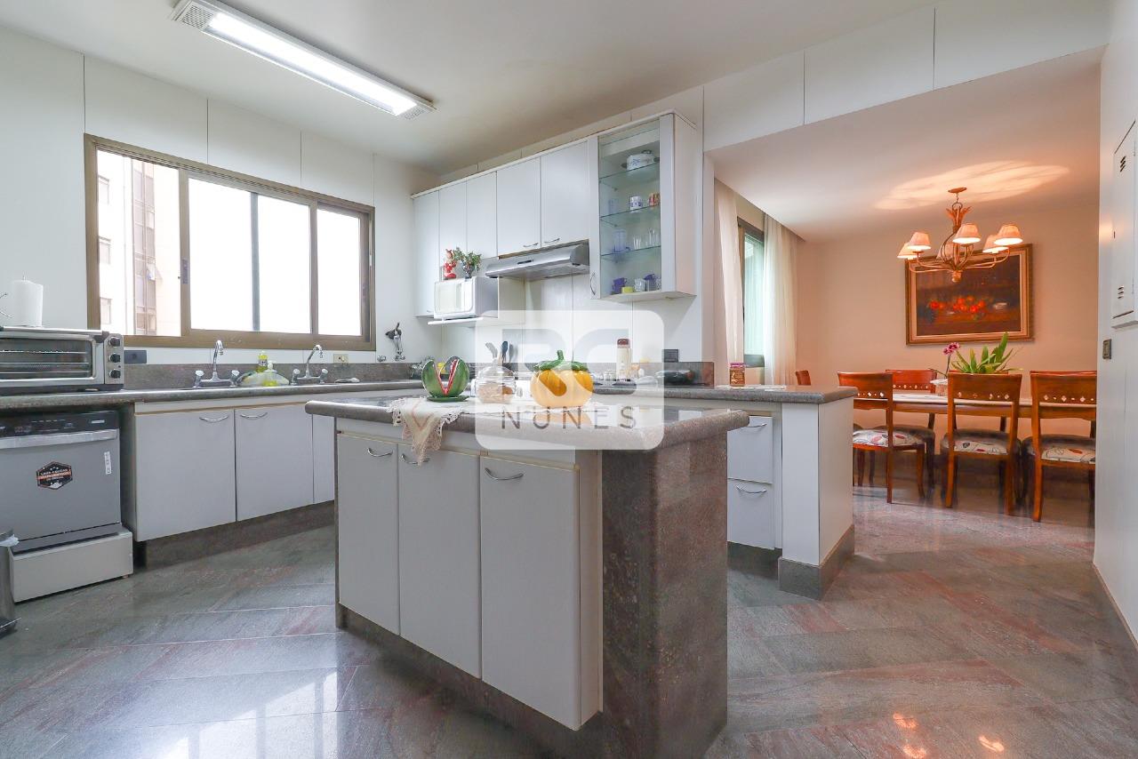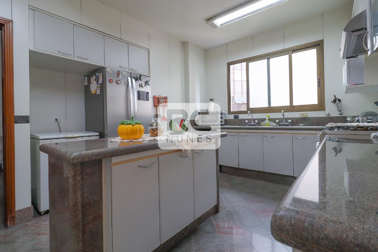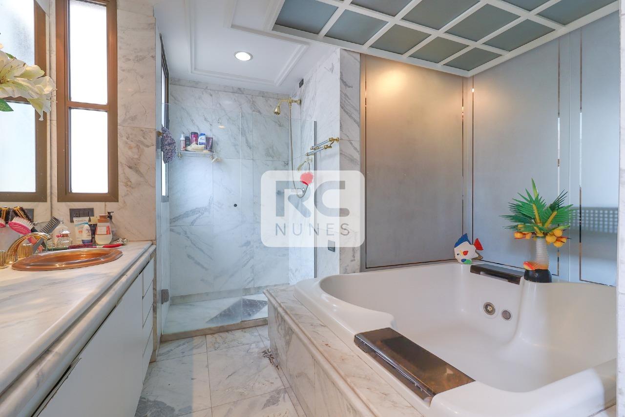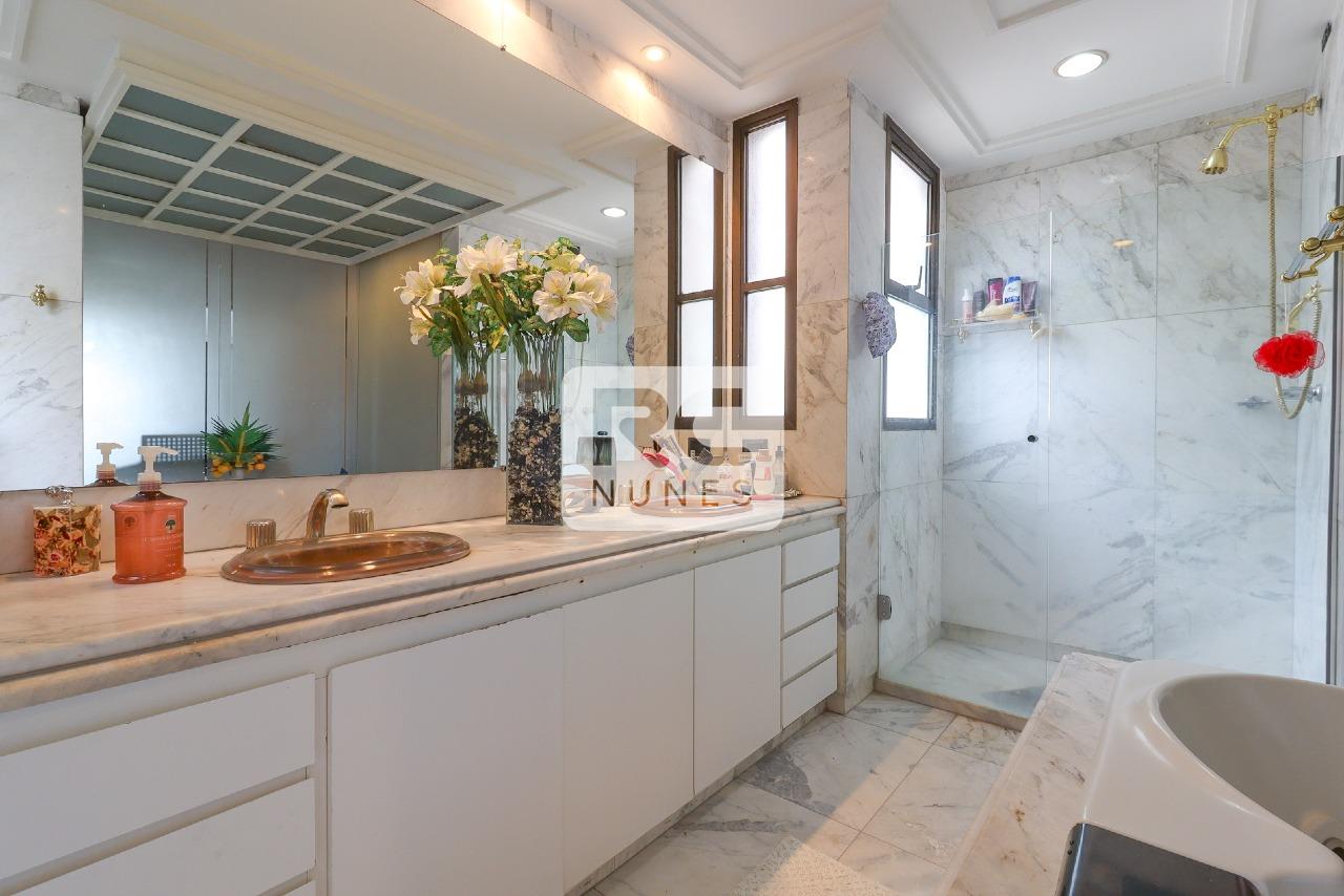 O apartamento possui sala com piso em tábua corrida e mármore, para 3 ambientes, projeto de iluminação, lavabo finamente decorado, varanda com vista panorâmica, 04 suítes, acabamento em mármore e granito. Rouparia, Closet, Cozinha ampla com piso e bancadas em granito, armários planejados. Área de serviço com piso em granito e DCE
