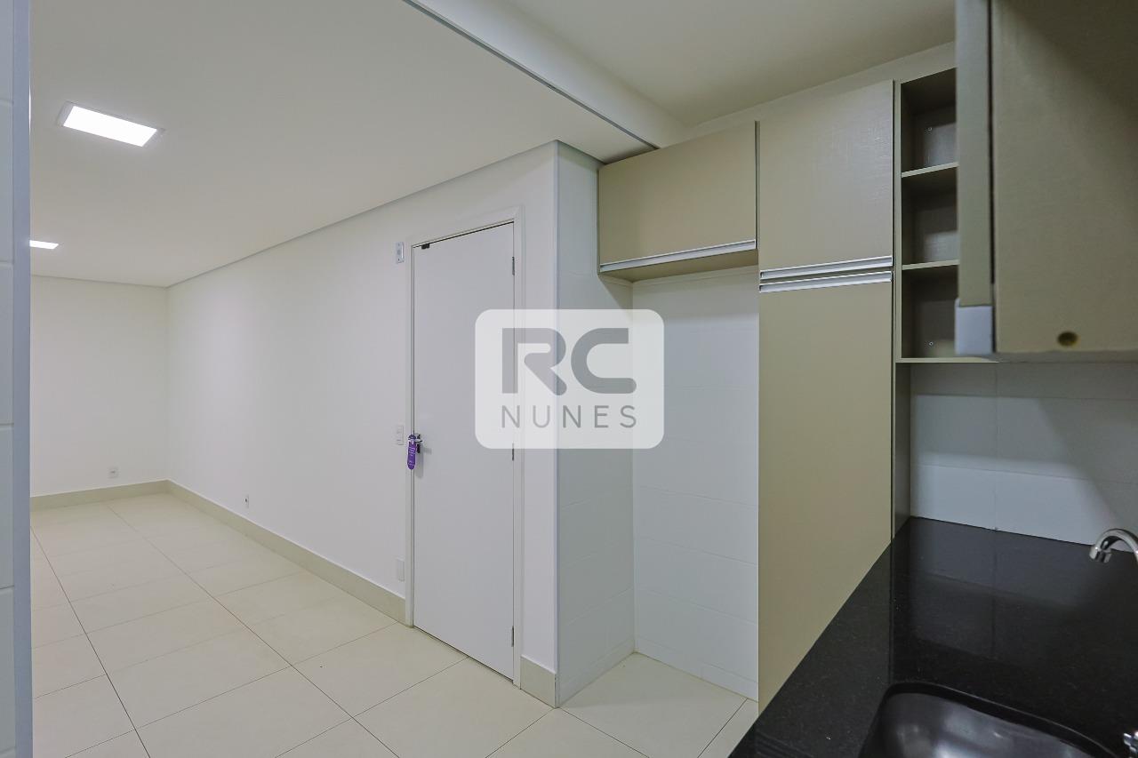 Sala com piso em porcelanato, vista privilegiada, integrada a cozinha;