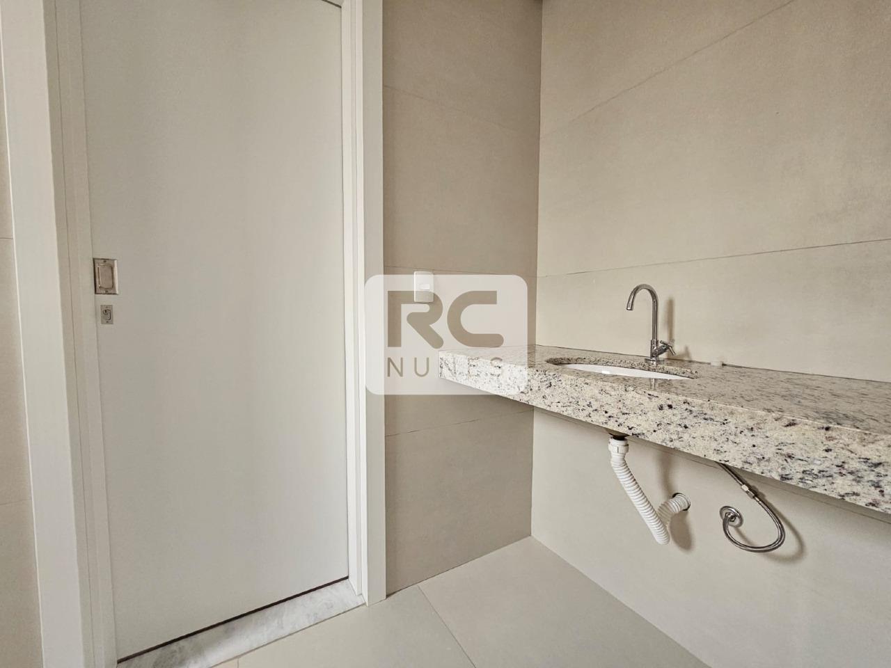 Área privativa com aproximadamente 138,33 m², composta por sala ampla revestida em porcelanato Portobello, com acesso direto à área externa, além de lavabo e cozinha integrada, proporcionando amplitude e praticidade ao ambiente social.