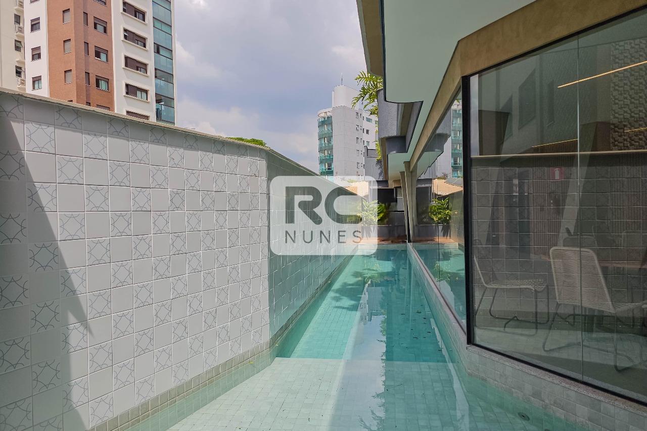O prédio apresenta arquitetura diferenciada, com fachada revestida em pintura texturizada e jardim frontal. O condomínio oferece portaria virtual, jardins, espaço fitness, piscina, espaço gourmet com churrasqueira e um excelente espaço de convivência.
