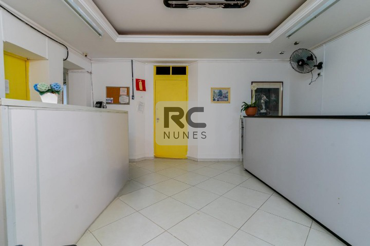 . Recepção extensa com janelas grandes