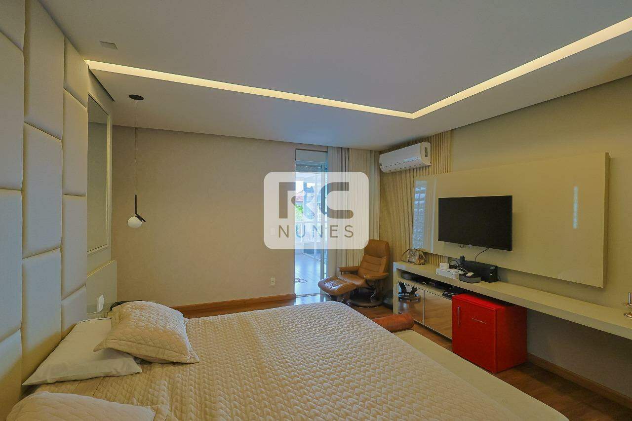 04 quartos, sendo 4 suítes, 03 suítes com closet. Destaque para a suíte master com varanda e pequena academia.
