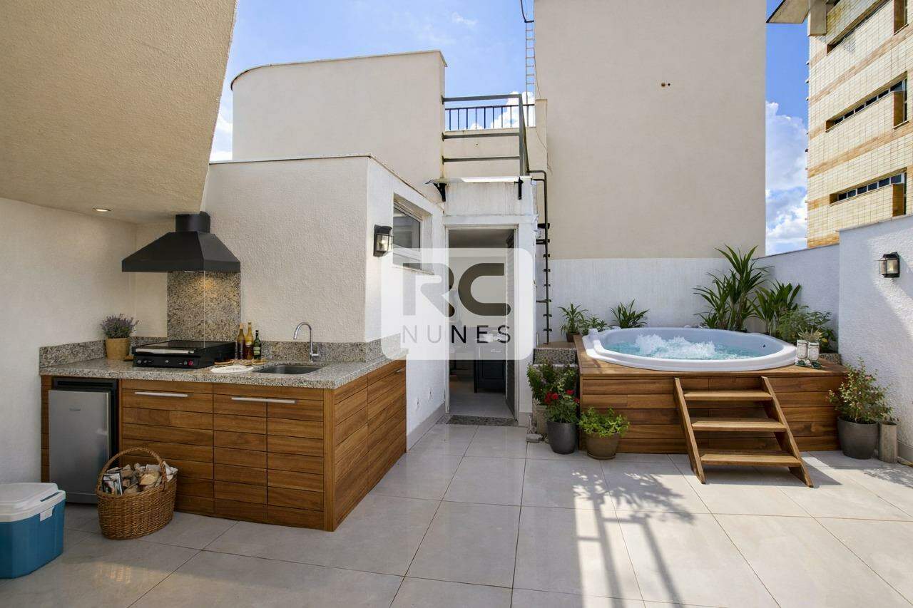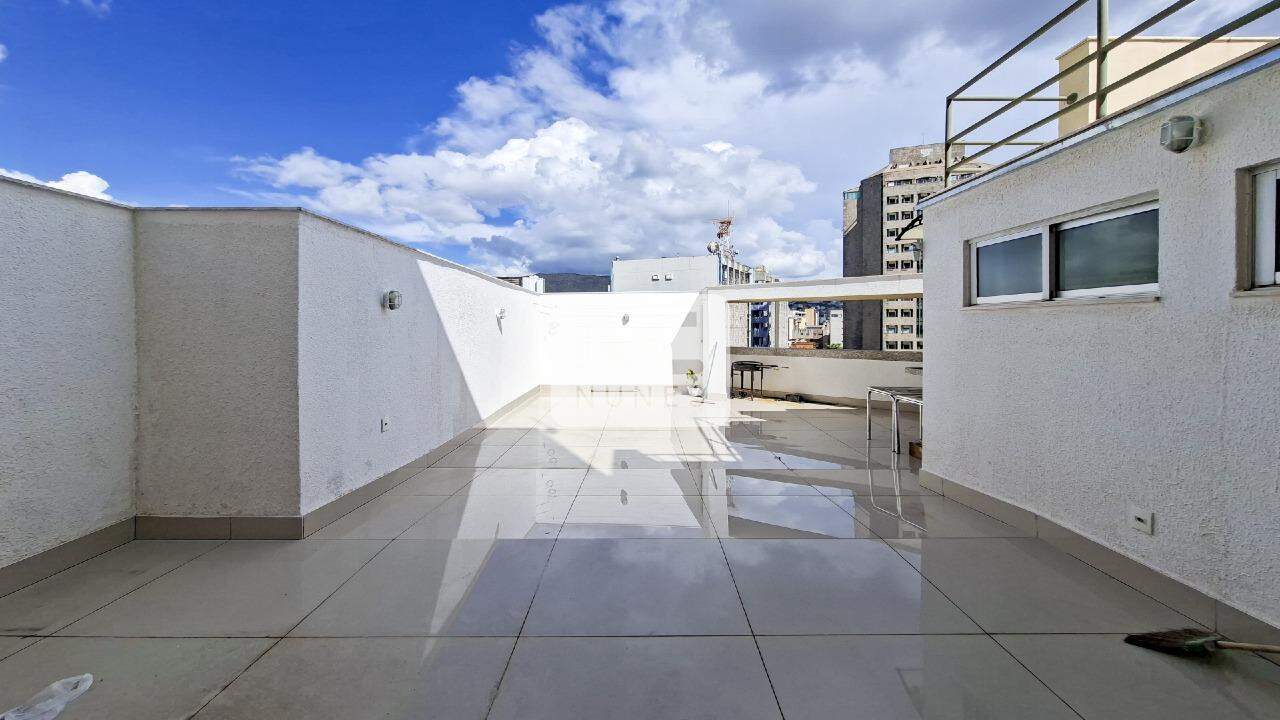 Área externa privativa no segundo pavimento, ampla, clara e ensolarada. A vista "360º" indica uma panorâmica completa da cidade e da Serra do Curral, ideal para lazer com chuveiro instalado, criar um espaço gourmet com churrasqueira, banheira. Ao lado do Corpo de Bombeiros.