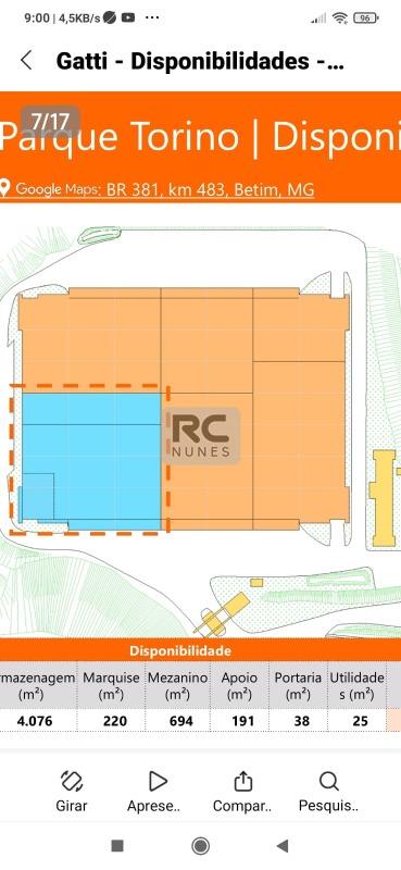 Prazo de Entrega: Imediato e BTS em setembro ABL Disponível: 1.216m² • Localização: Betim (MG) 4 T