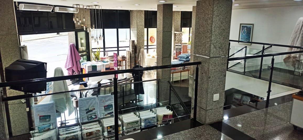 Imóvel com acabamento de primeira, pé direito alto e faixada de vidro ampla por toda a extensão da esquina.