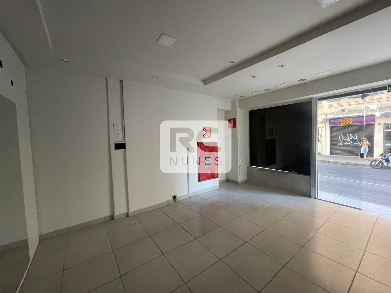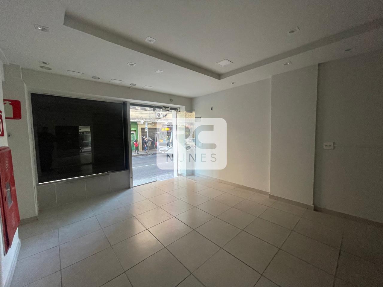 Frente da loja com aproximadamente 25m², com piso de cerâmica e porta em blindex.