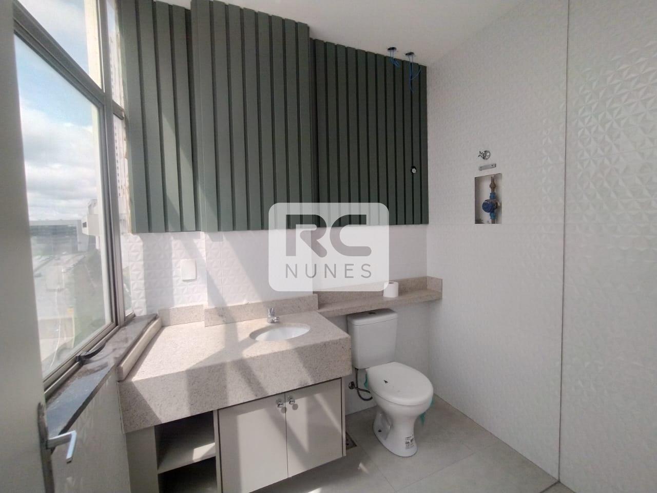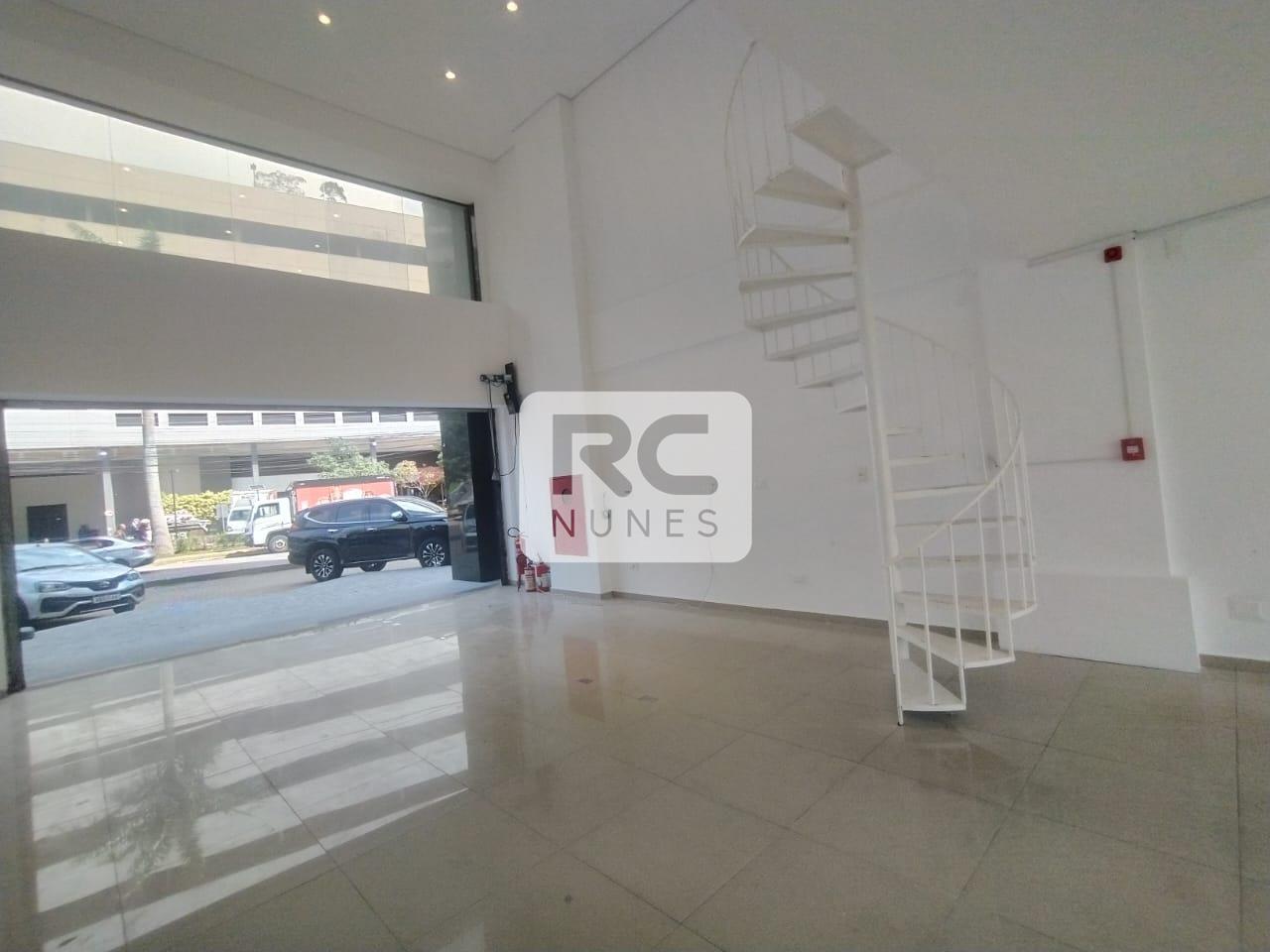Loja nova para aluguel no Portal de Nova Lima, no primeiro pavimento e mezanino de 30m². O primeiro piso possui acabamento em porcelanato e conta com escada de estrutura metálica com corrimão. No mezanino, o piso é cerâmico pintado, com um banheiro equipado com piso em granito. O imóvel é arejado, recebe sol da manhã, possui projeto de iluminação e ótimo acabamento, oferecendo um ambiente moderno e confortável para diversos tipos de negócios.