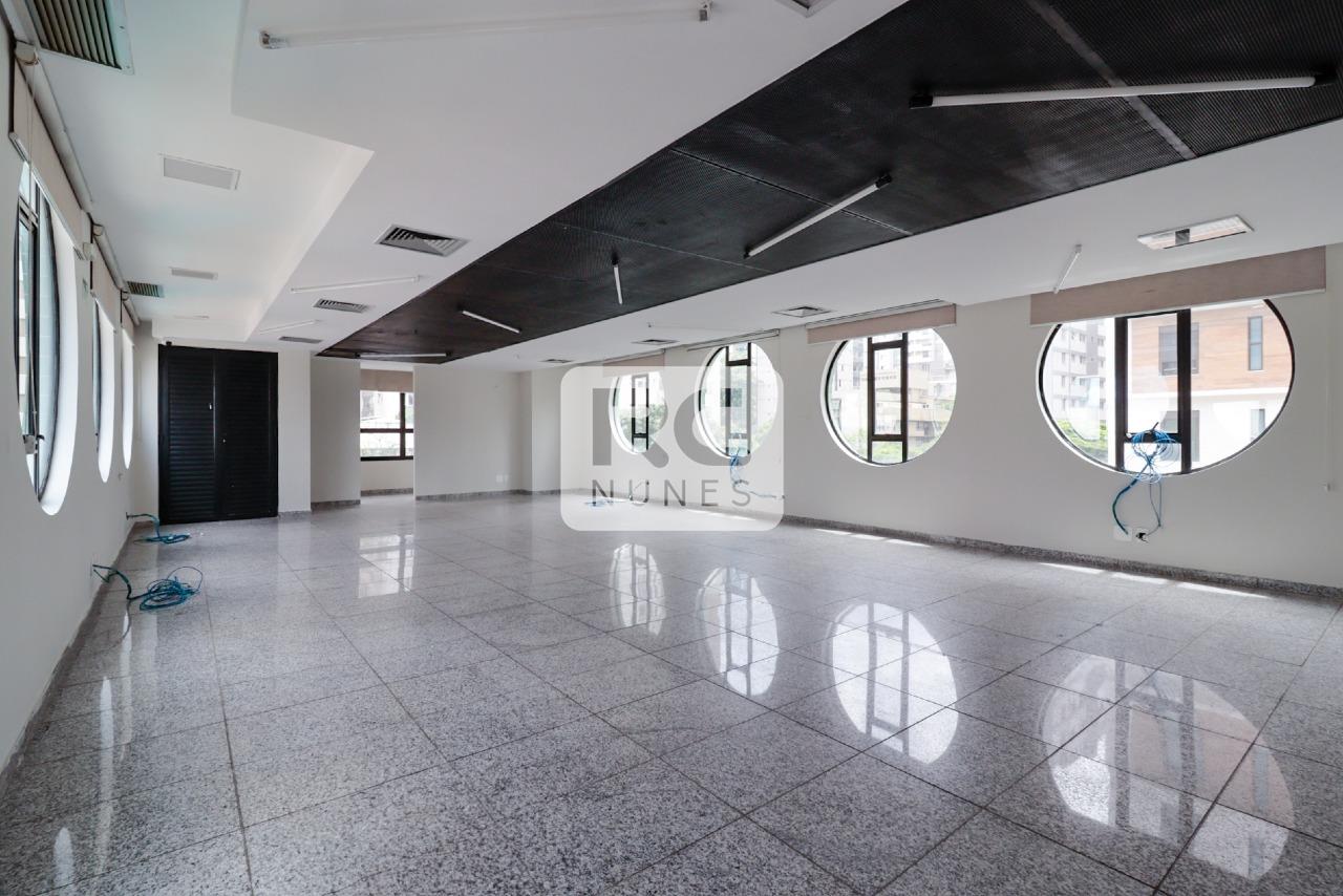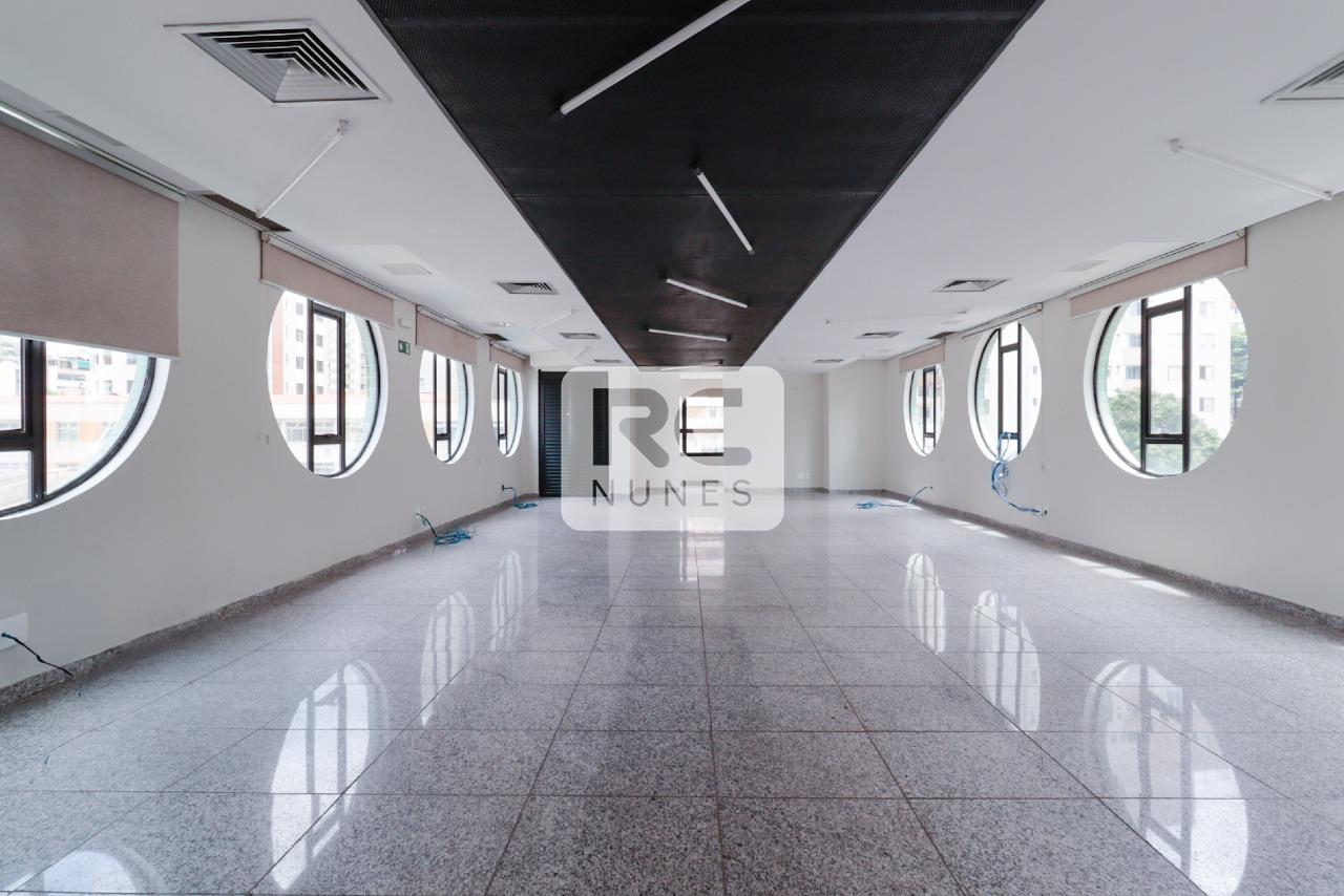 3º Andar (373 m²): Ambientes amplos com conceito aberto, 3 salas, copa, 4 banheiros, 2 vestiários, depósito e área externa, piso vinílico.