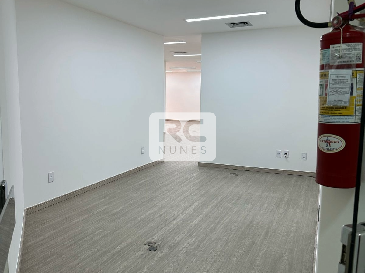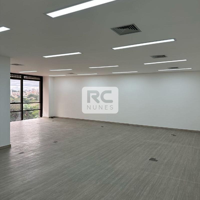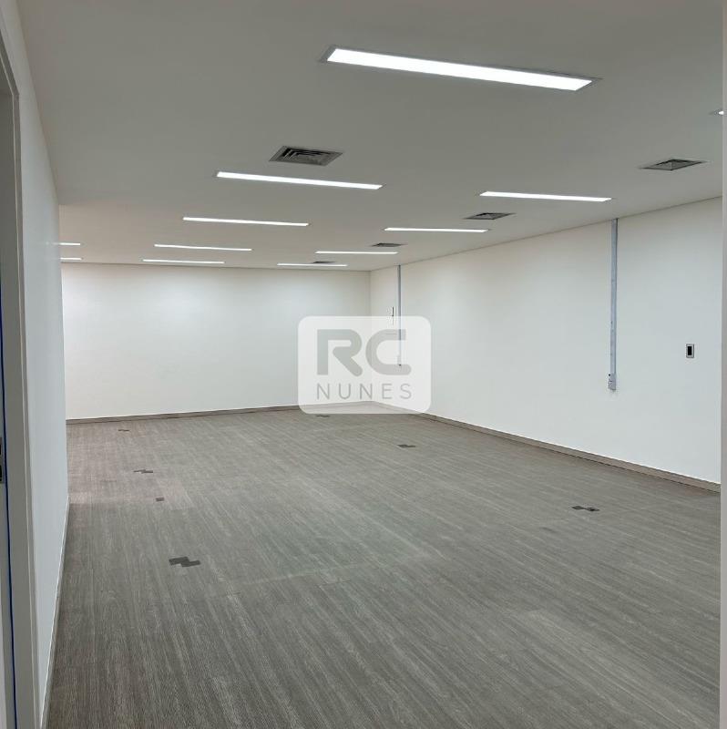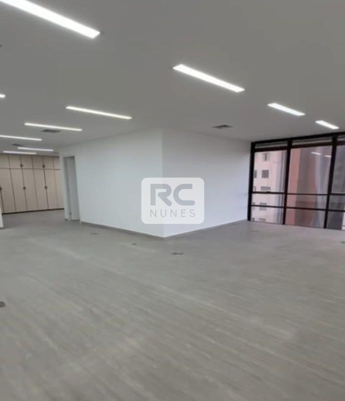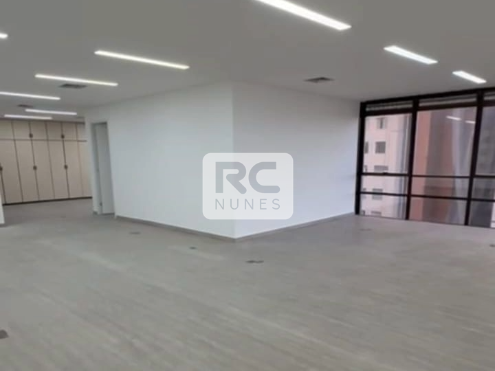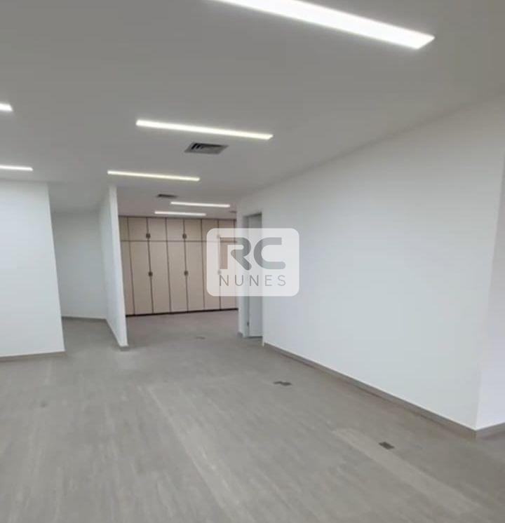 Sala com área de 140m² com piso em vinílico, rebaixamento de teto com iluminação planejada e armários;