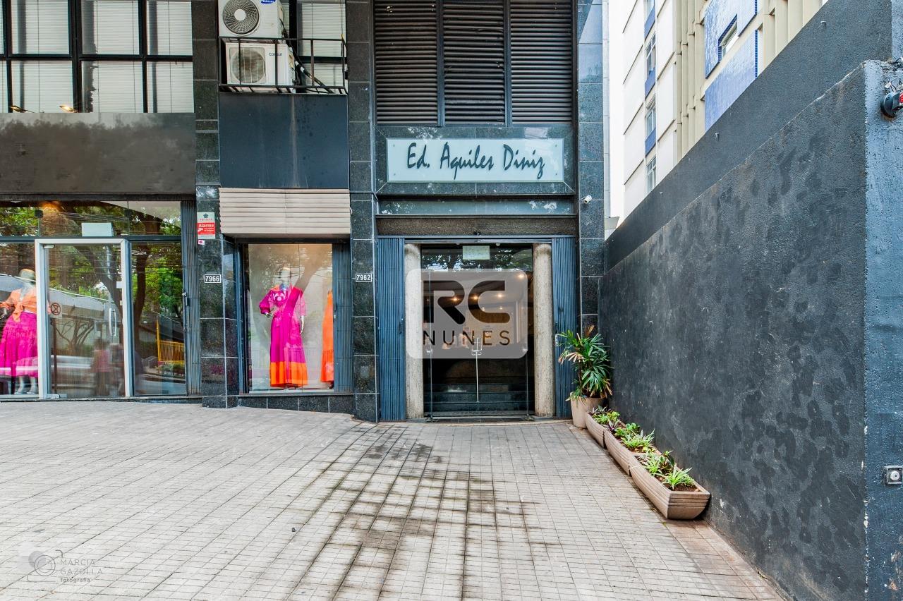 Prédio revestido com pastilha de cerâmica e granito, hall de entrada decorado, 02 elevadores e portaria física durante horário comercial.